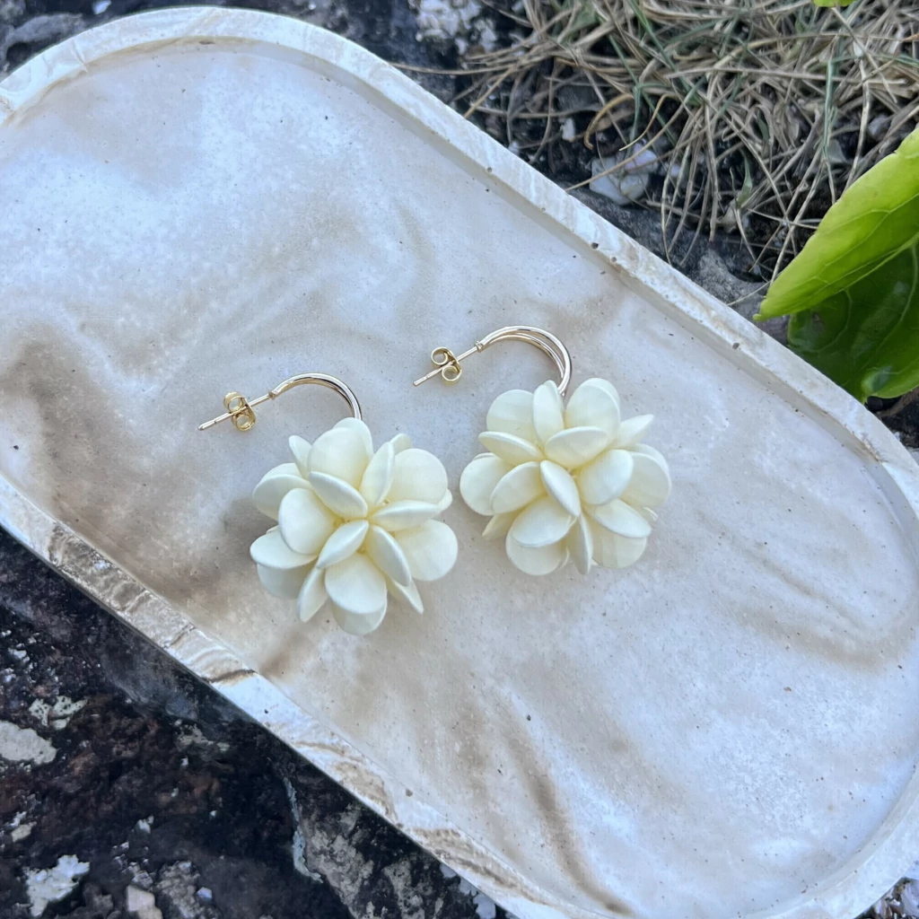 Brinco Argola Flor com resina folheado a ouro 18k.