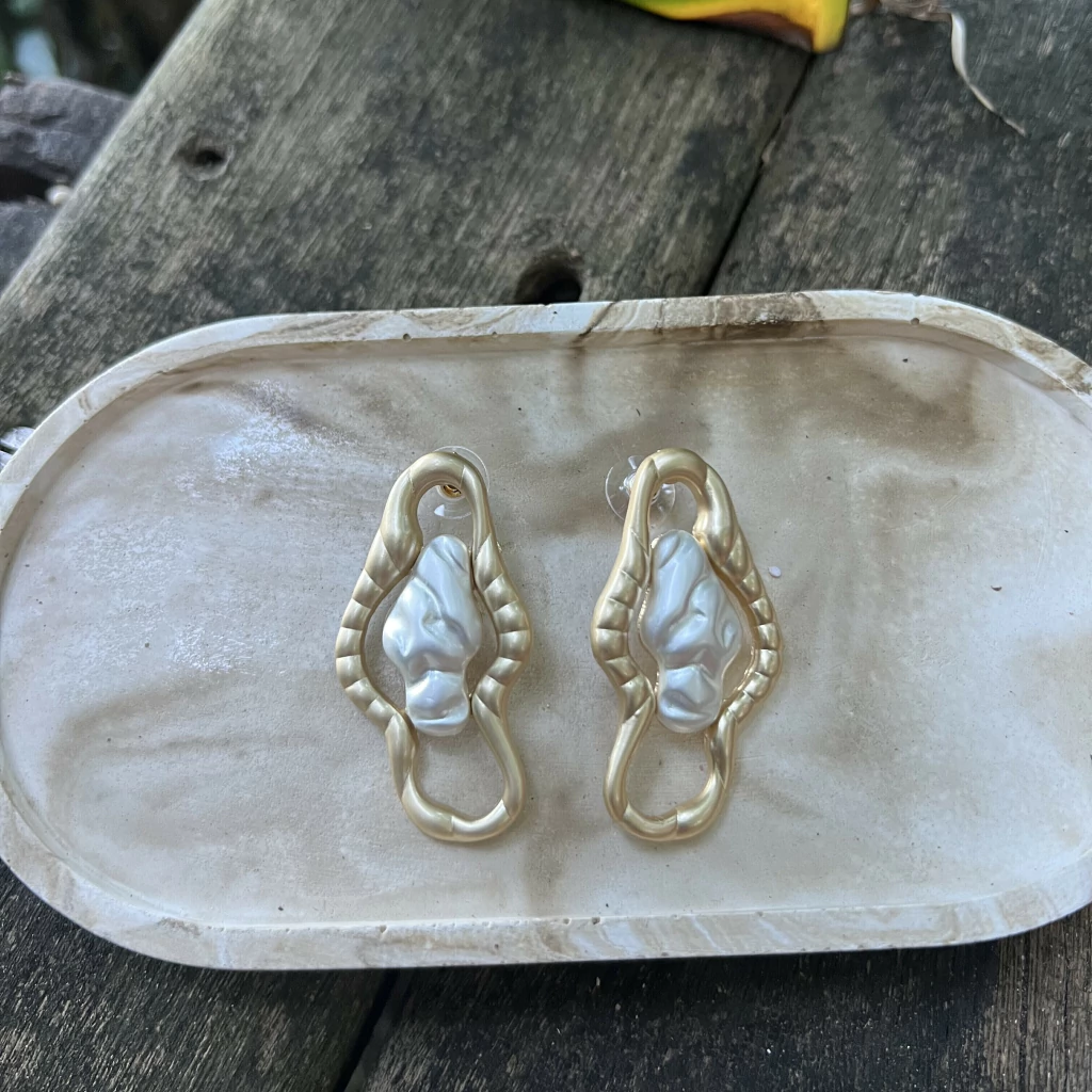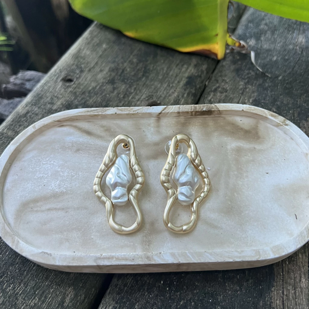 Brinco folheado a ouro 18k e prata orgânico martelado - mix.